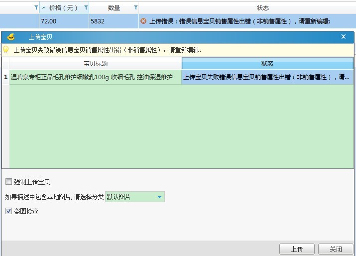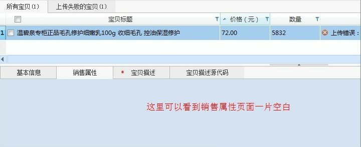 上传该宝贝会出现提示:宝贝销售属性出错(非销售属性),请重新编辑