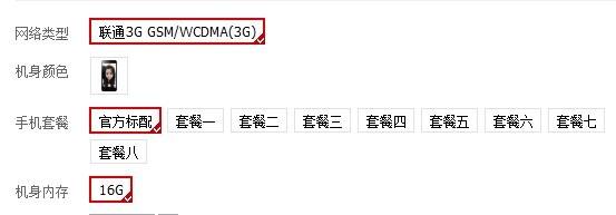 请看下面手机类目的宝贝,“网络类型”是销售属性,可选择三种类型: