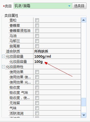 如果把“化妆品容量”选成其它,再选回1000g/ml,这时您会发现有点变化