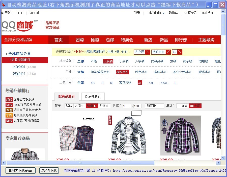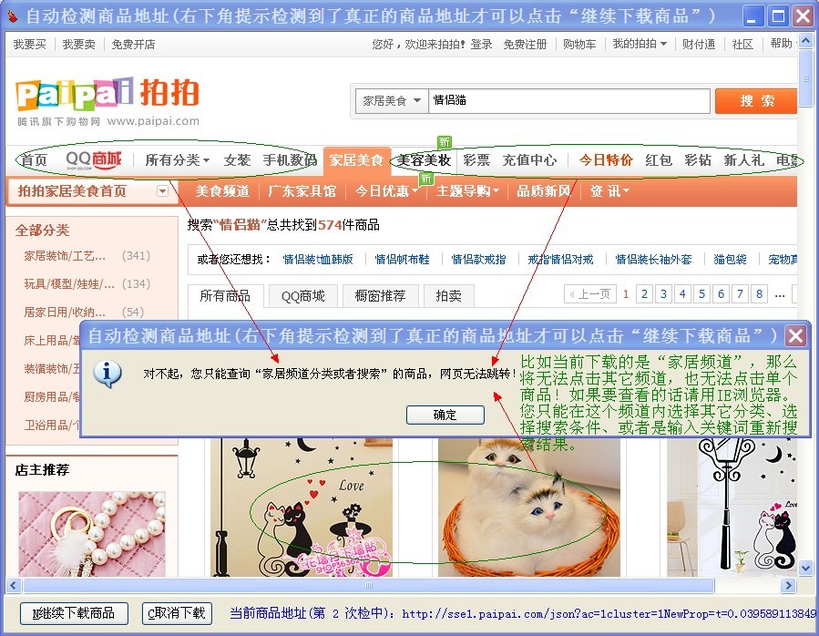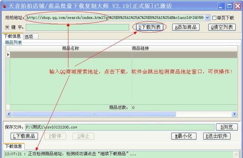 QQ网购、女装、男装、数码、运动、美妆、家居、美食、母婴、箱包、手表、饰品、图书,目前下载这几类地址都无法直接得到商品信息,如果您下载的地址是其中的一种,软件的执行步骤如下: