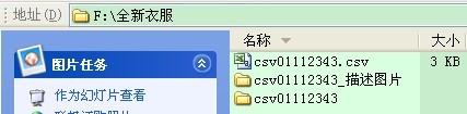 csv01112343—>该文件夹主要存放“商品图片”+“库存属性图片”+“商品描述文件”,打开可看到图片为jpg格式。