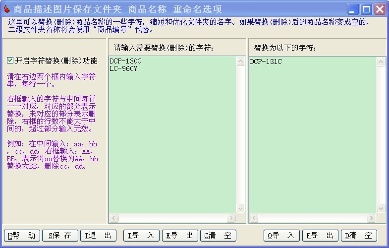 可以替换(删除)商品名称的一些字符,缩短和优化文件夹的名字。如果替换(删除)后的商品名称变成空的,二级文件夹名称将会使用“商品编号”代替。
