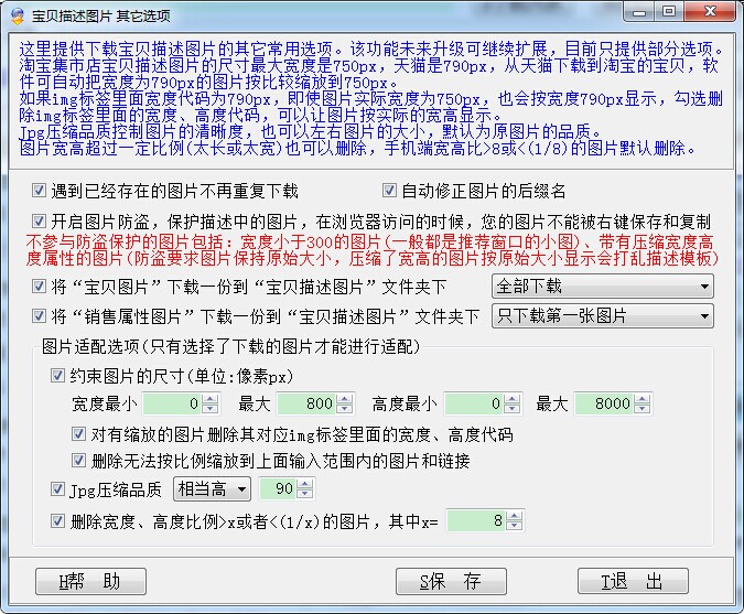 这里提供下载商品描述图片的其它常用选项。该功能未来升级可继续扩展,目前只提供部分选项。