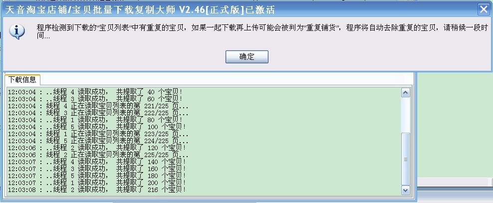 将“自动检测重复商品”功能关闭,“下载列表”从第200页开始下载。