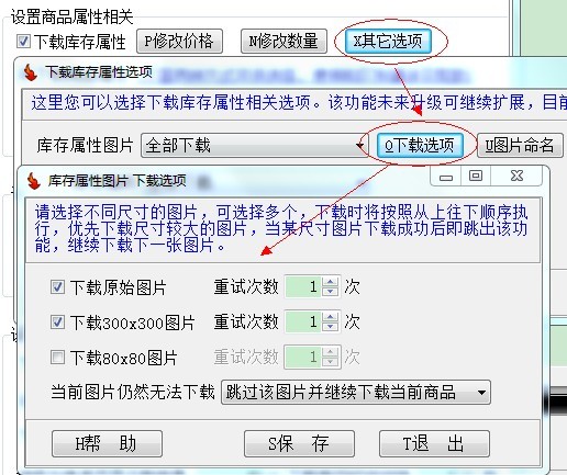 软件里面内置了两种下载商品属性(库存属性)的方式: