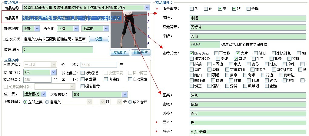 商品属性 是一个商品的基本特征,拍拍里面将商品属性分为“必填属性”和“非必填属性”,拍拍助理里面一些打星(*)号属性都是必填属性,如果空缺的话将无法上传商品。