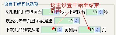 设置页区间下载:选项里面可以设置从第a页到第b页下载,软件会将您当前填入的“拍拍地址”页码数和选项设置的页数相比较,从较大的页数开始下载。