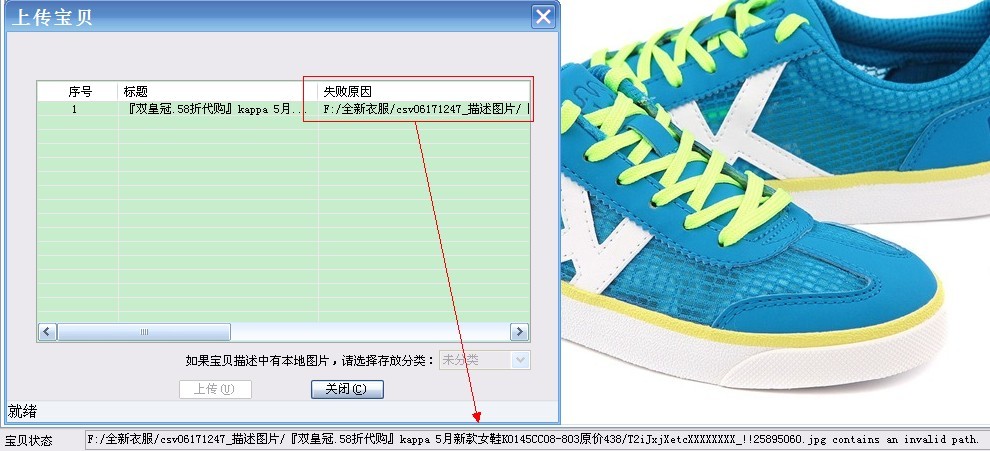 上传宝贝时错误示意图: