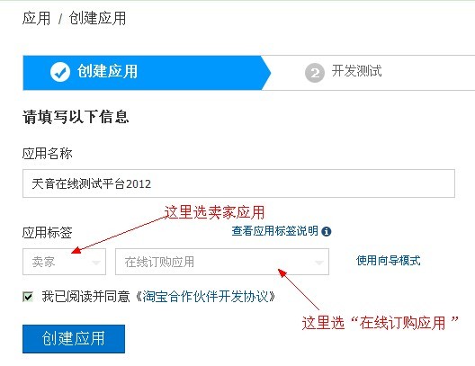 点击该创建应用,点击后会出现下面的表单,自行填写一个“应用名称”,按下图选择“应用标签”: