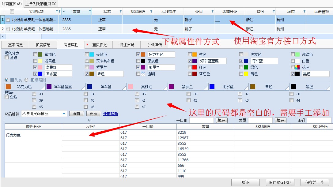 淘宝店铺/宝贝批量下载复制大师 下载宝贝属性和销售属性 需要手动调整属性的情况分析: