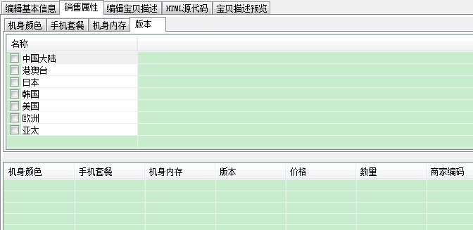 上面都是旧版的销售属性面板,下面是淘宝助理最新的销售属性页面