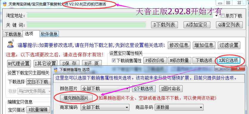 淘宝店铺/宝贝批量下载复制大师 颜色图片自动填充功能: