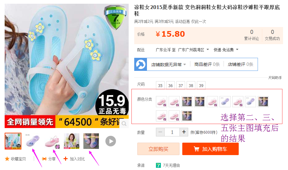 例子三、使用主图第二、三、五张重复随机填充,直到颜色属性全部都填满为止,无需再选择其它两种方式,选了也无效: